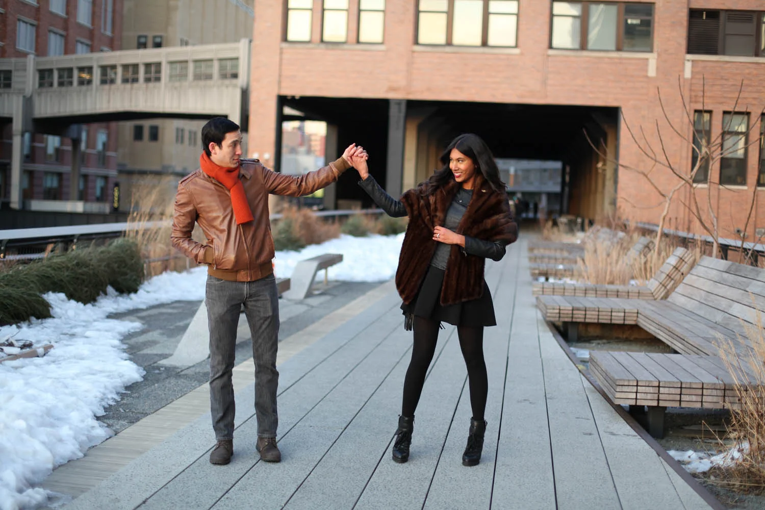 But I digress...when Dana and Radika showed up to meet me, I knew we were going to make some great photos right away because they looked so stylish, and even brought a few wardrobe options. I enjoyed seeing these two interact- they were so sweet to one another, and matched each other in every way. They would both go for a semi-serious pose, and then every single time, the shot right after the serious shot was a shot of the two of them cracking up at themselves. They were such good sports, willing to try whatever photos seemed cool, but it all unfolded naturally and we had a very memorable afternoon in Chelsea together.